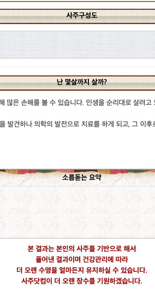 하지만 테스트에서 말하고 있다시피, 이것은 사주 결과일 뿐이며 실제로는 건강관리에 따라 더 오래 잘 살 수 있다!
