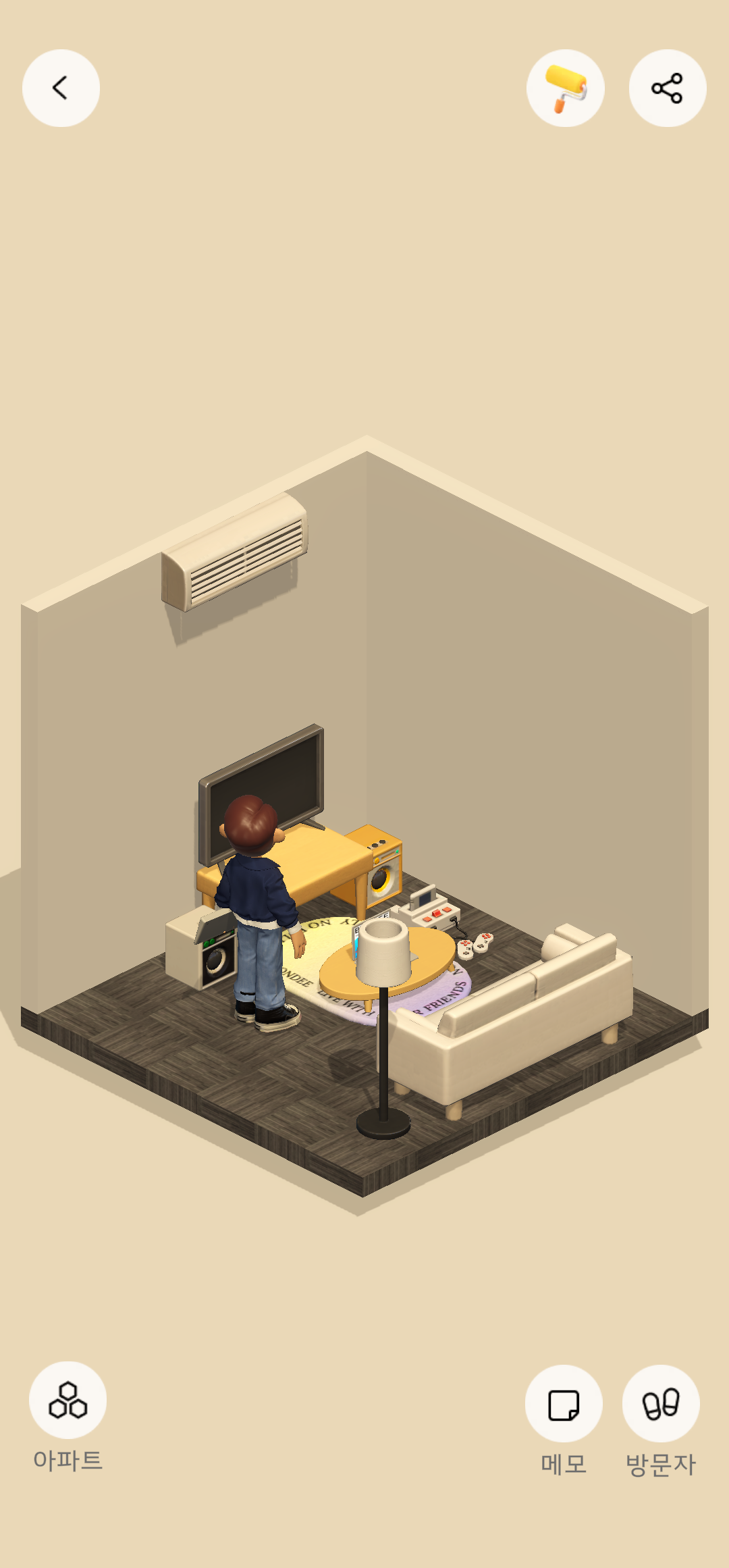 이를 클릭하면 아파트를 꾸미거나 친구들 아파트에 방문하여 메모를 나눌 수 있다.