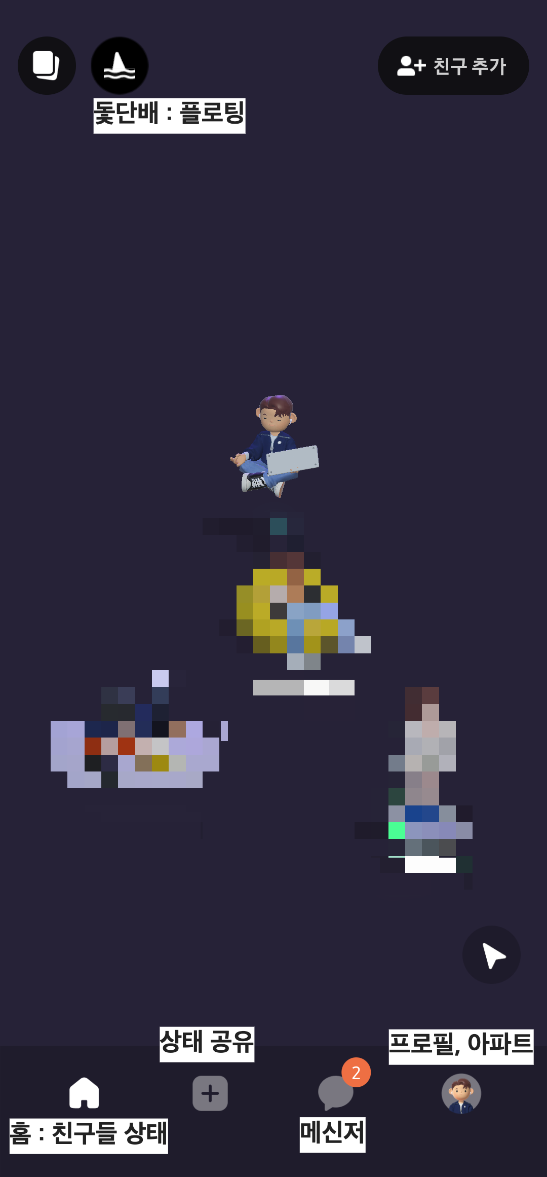 초기화면으로 이동하는데 아래 사진처럼 친구들의 현재 상태를 한 눈에 볼 수 있어서 아기자기하고 직관적이다.