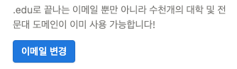 대학 및 전문대의 교육용 도메인 (.edu, .ac.kr 등)으로 된 이메일로 변경한다.