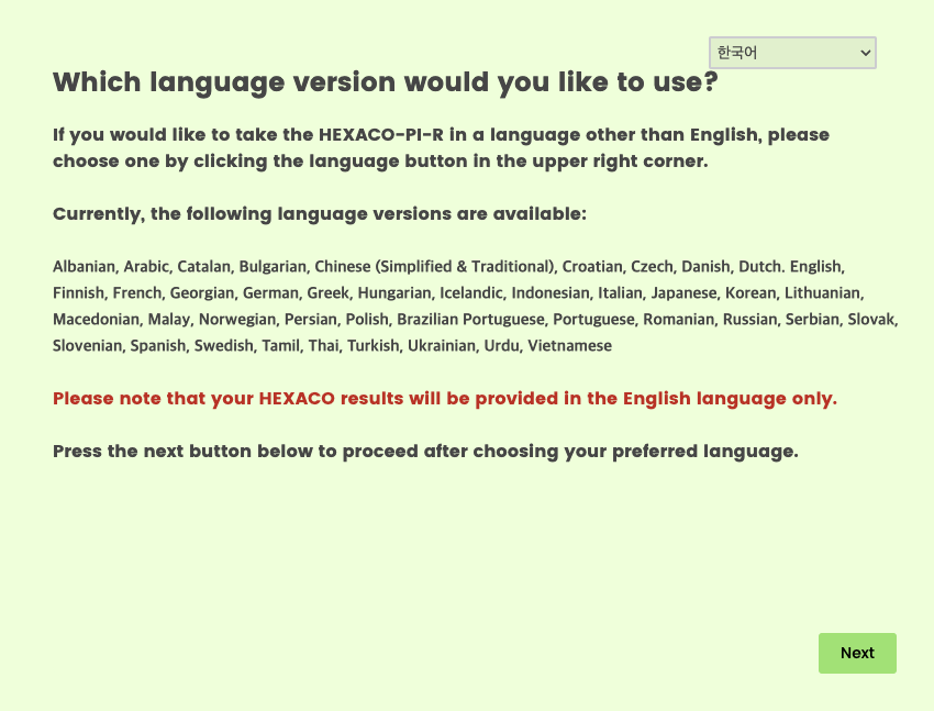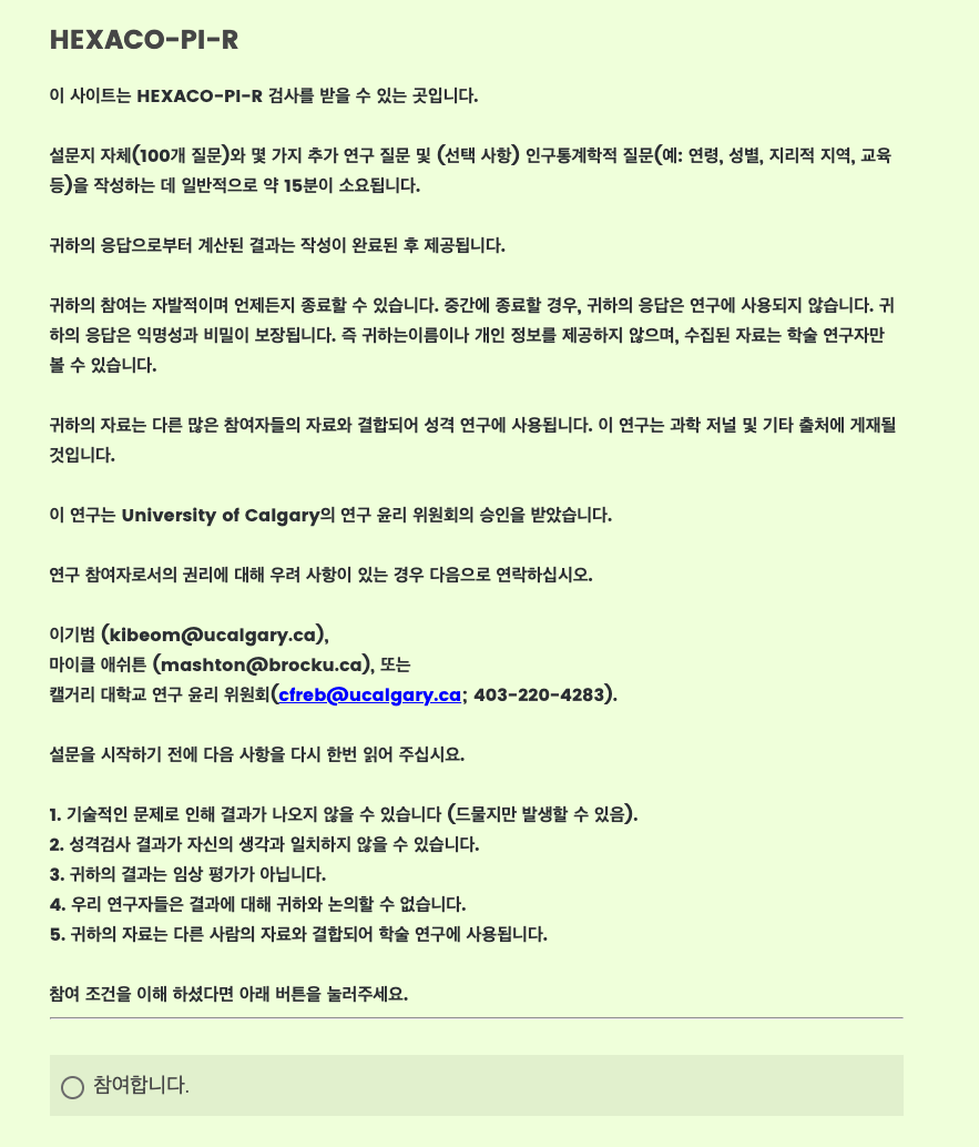 HEXACO-PI-R 웹사이트에 제공된 설명을 참조하십시오.
