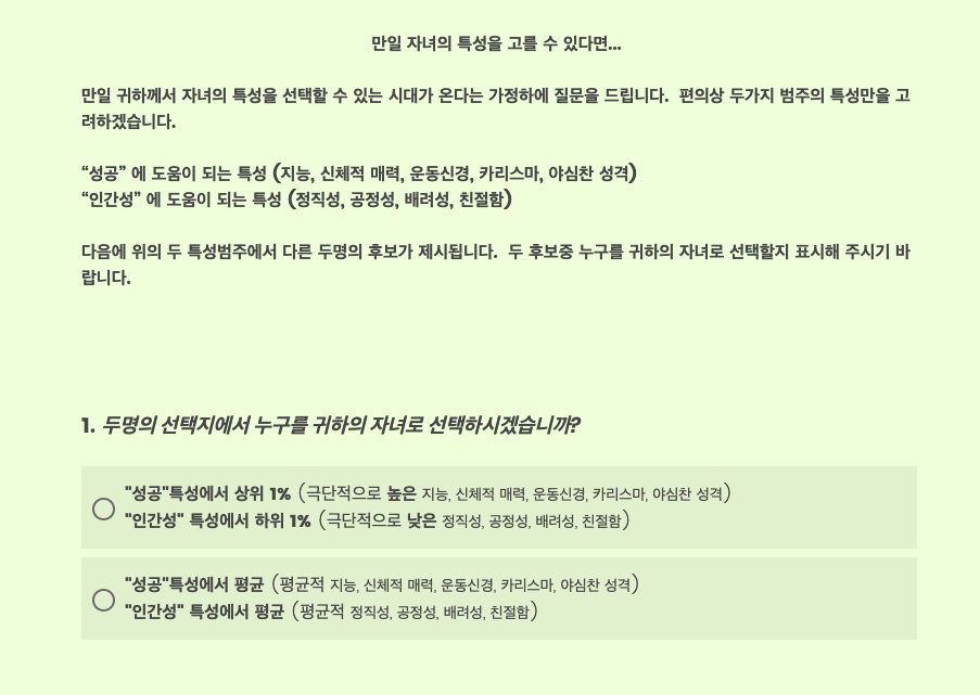 아래 문구가 나오고부터는 조금 더 디테일한 상황에서 디테일한 선택지가 주어진다.