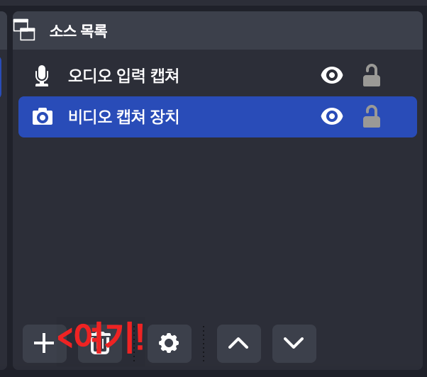1. 소스 목록에서 + 버튼을 클릭한다.