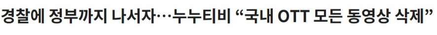 누누티비는 국내에서 민감하게 수사하고 있는 '국내 OTT 콘텐츠를 불법으로 스트리밍'을 일단 멈추려는 듯 하다.