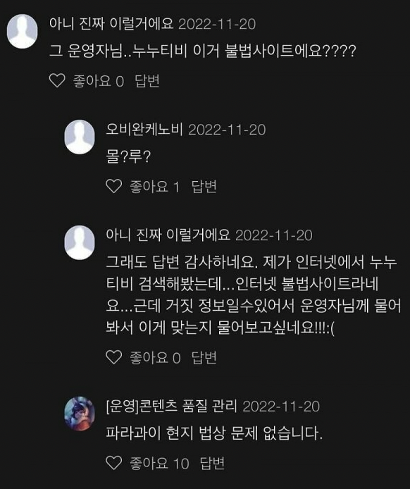 ↑ 누누티비 불법 질문에 대한 운영진의 답변