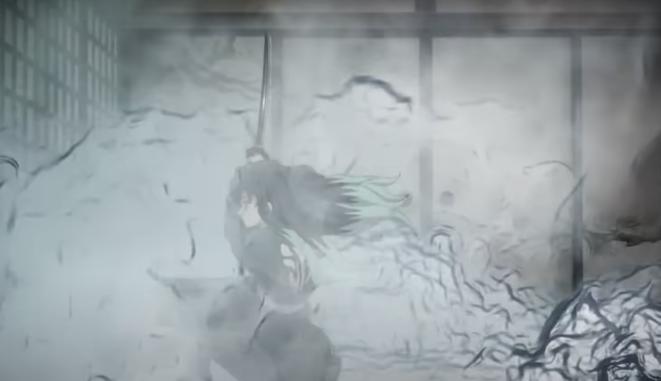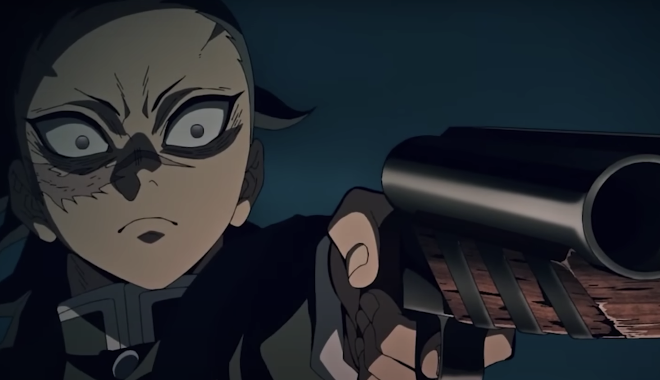 10. 탄지로 남매가 두 혈귀를 상대하며 고전하던 때, 겐야가 나타나서 총을 발사하여 탄지로를 구하고자 한다. 탄지로는 가까스로 위기에서 벗어난다.