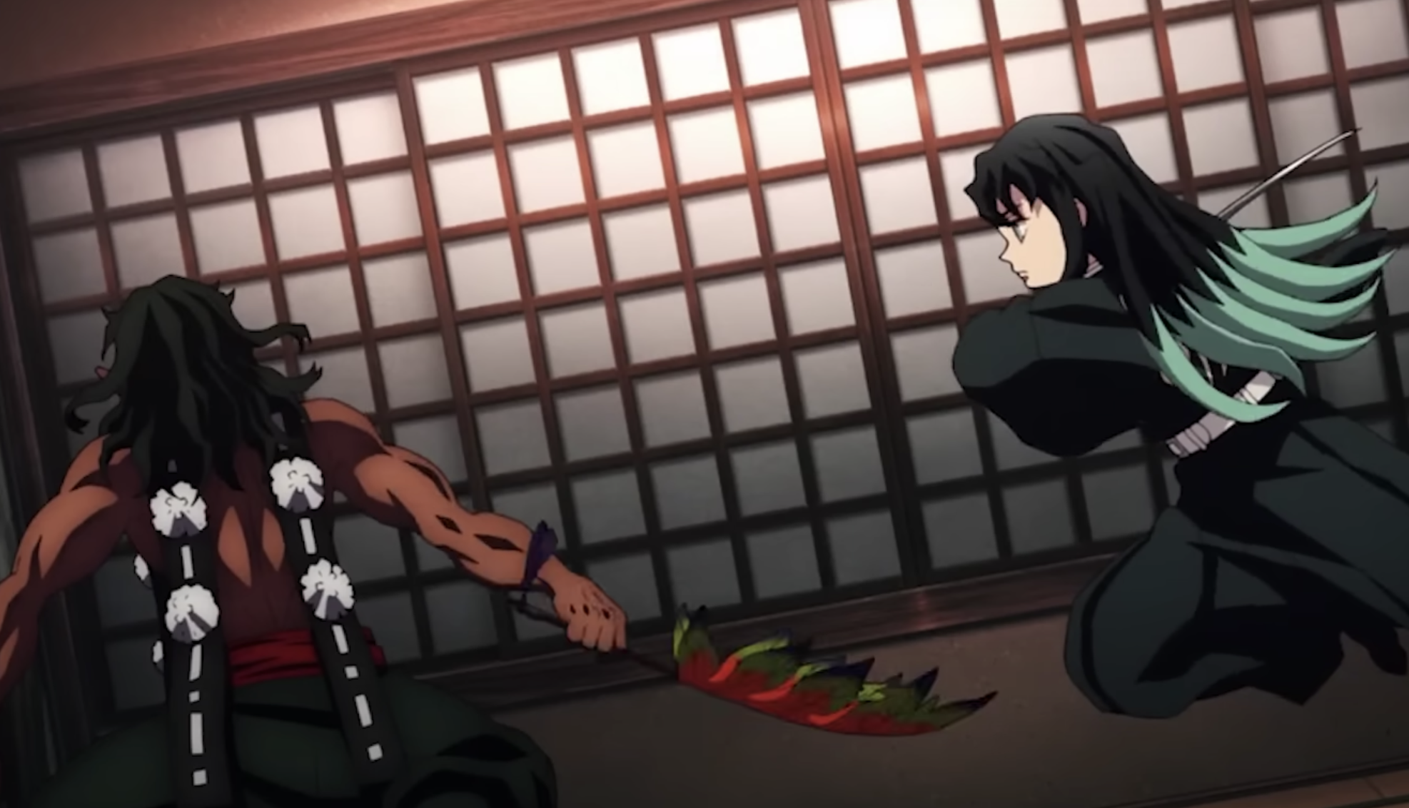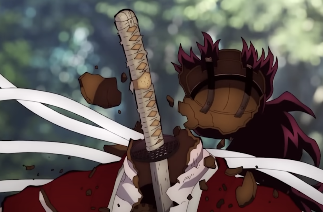 7. 무이치로와 탄지로가 상현(한텐구)를 막기 위해 안개 호흡과 히노카미 카구라를 사용하여 혈귀의 목을 잘라내는데 성공한다.