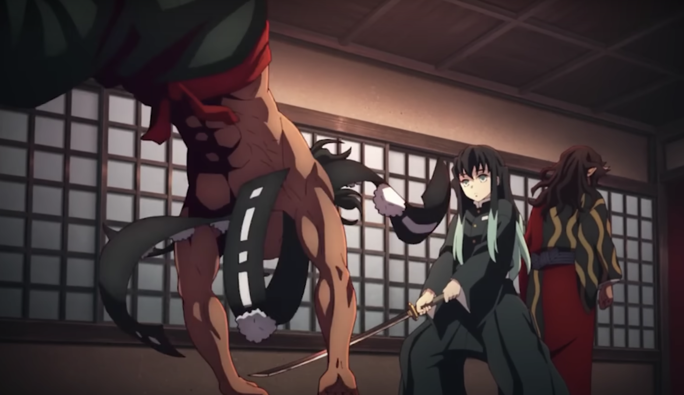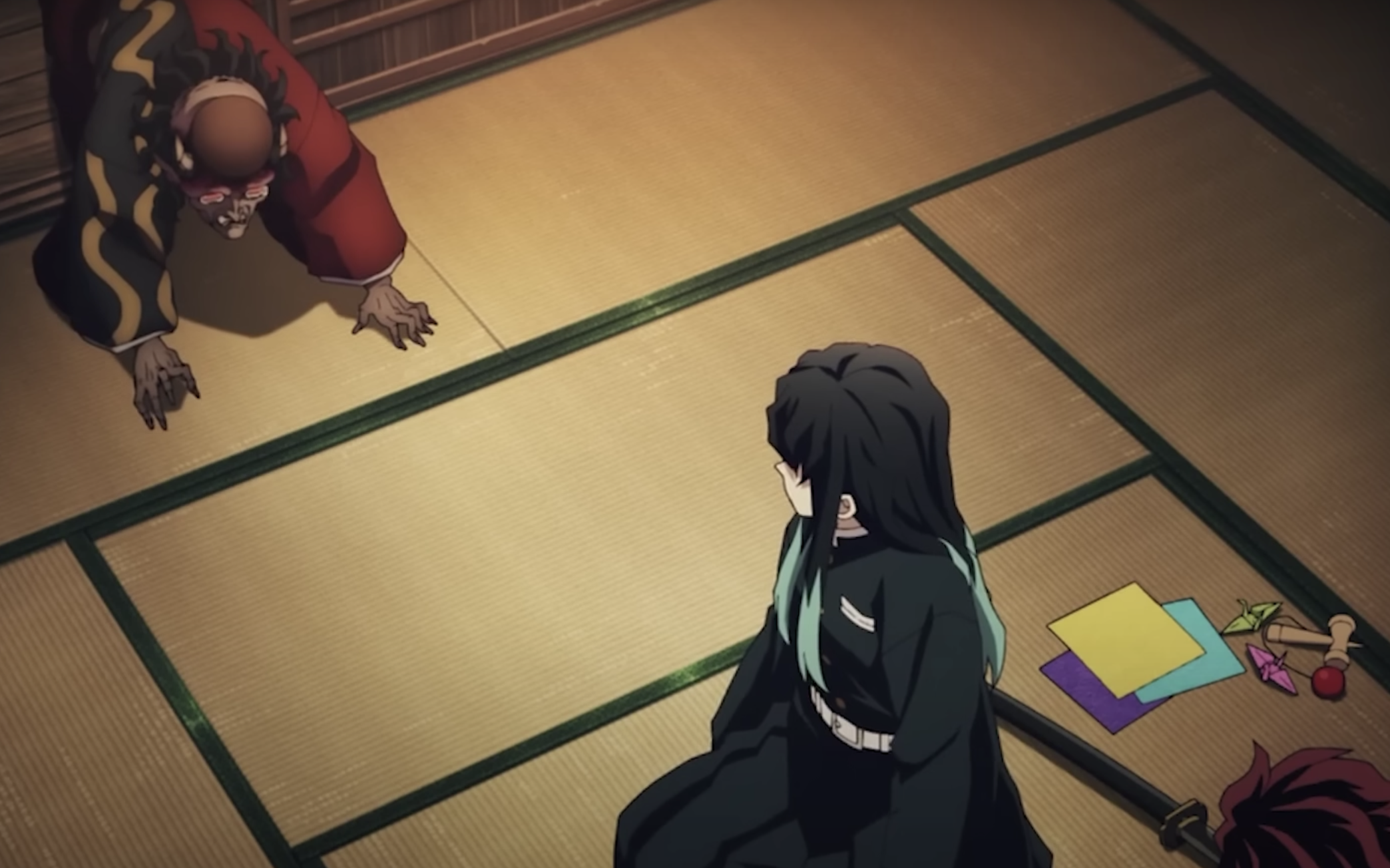 6. 무이치로와 탄지로가 인기척도 느끼지 못한 그 사이에 상현 혈귀인 한텐구가 방에 들어온다.