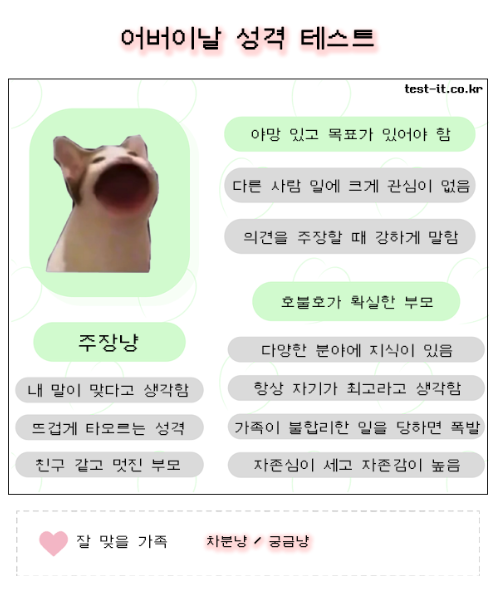 잘 맞을 성격은 차분냥과 궁금냥 이라고 한다.