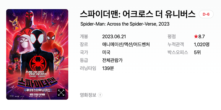 스파이더맨 어크로스 더 유니버스 (스파이더 버스)을 개봉했습니다.