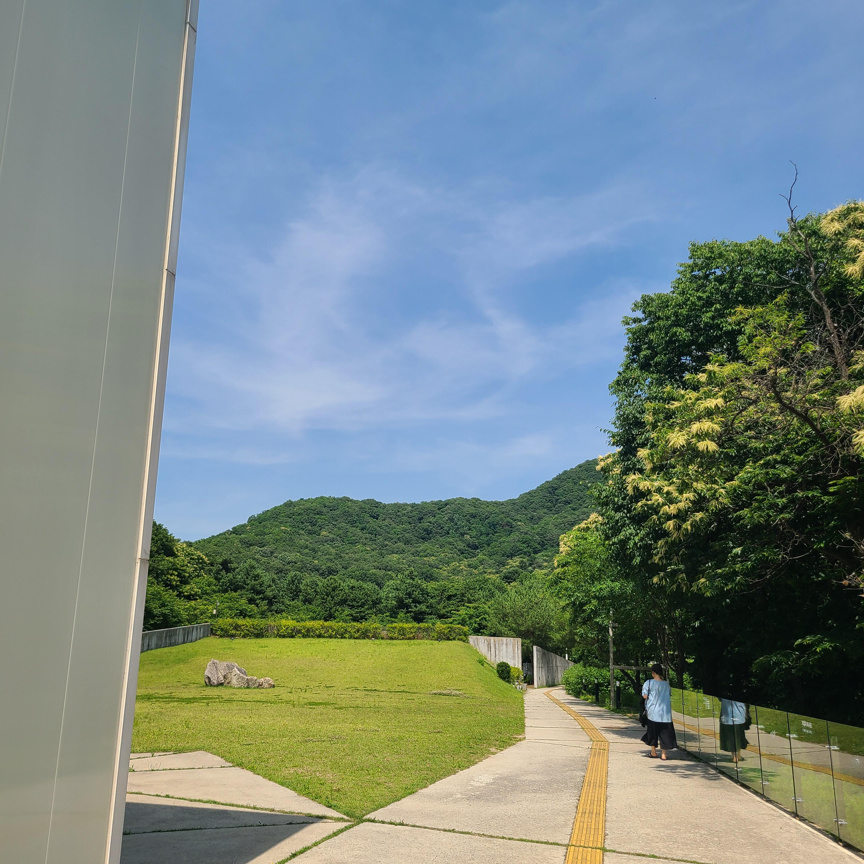채광이 아주 좋아서 장욱진 미술관 본관(하얀색 건물)로 향하는 길이