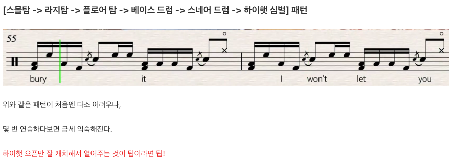 드럼 배우는 순서-8주차 : 심벌+탐+드럼 연계 연주 [리뷰/일상] - 드럼 배우는 순서-7주차 : 크래시 심벌 활용 연주 드럼 배우는 순서-7주차 : 크래시 심벌 활용 연주 드럼 배우는 순서-7주차 크래시