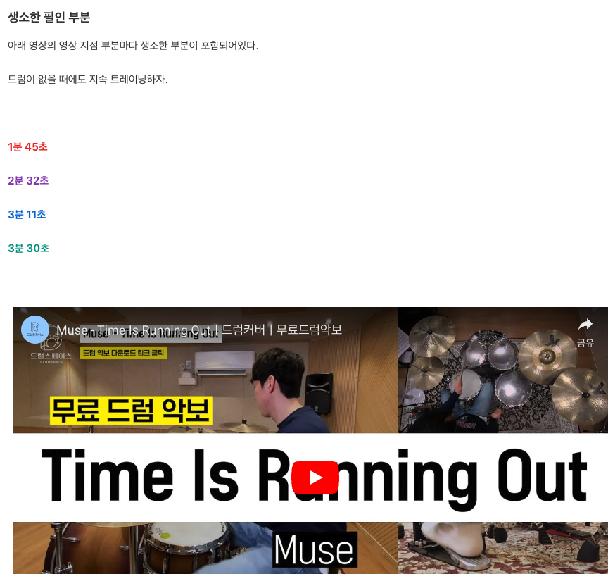 드럼 배우는 순서-12주차 : 빠르고 복잡한 박자가 어려울때 꿀팁 [리뷰/일상] - 드럼 배우는 순서-11주차 : Time is running out 정복! 드럼 배우는 순서-11주차 : Time is running out 정복! 드럼 배우는 순서-11