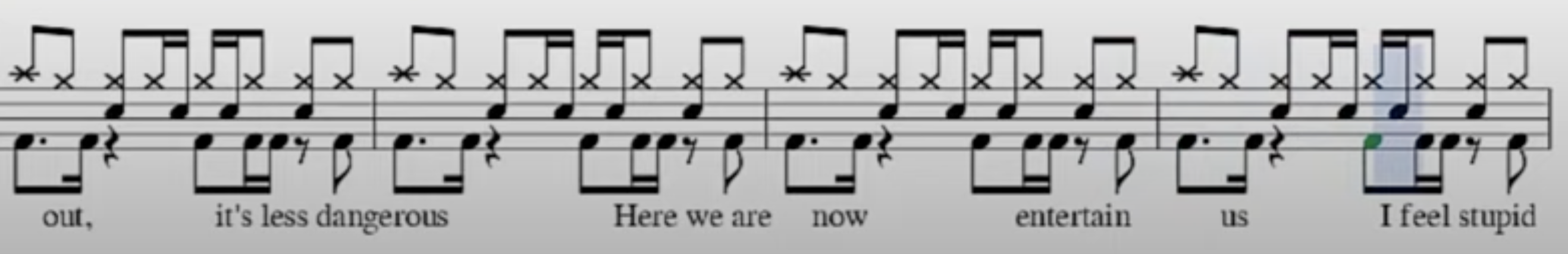 드럼 배우는 순서-14주차 : 베이스 드럼 박자가 안맞을 때 Smells like teen spirit 완곡 [리뷰/일상] - 드럼 배우는 순서-13주차 : 왼손발과 오른손발 박자 맞추기(Smells like teen spirit) 드럼 배우는 순서-13