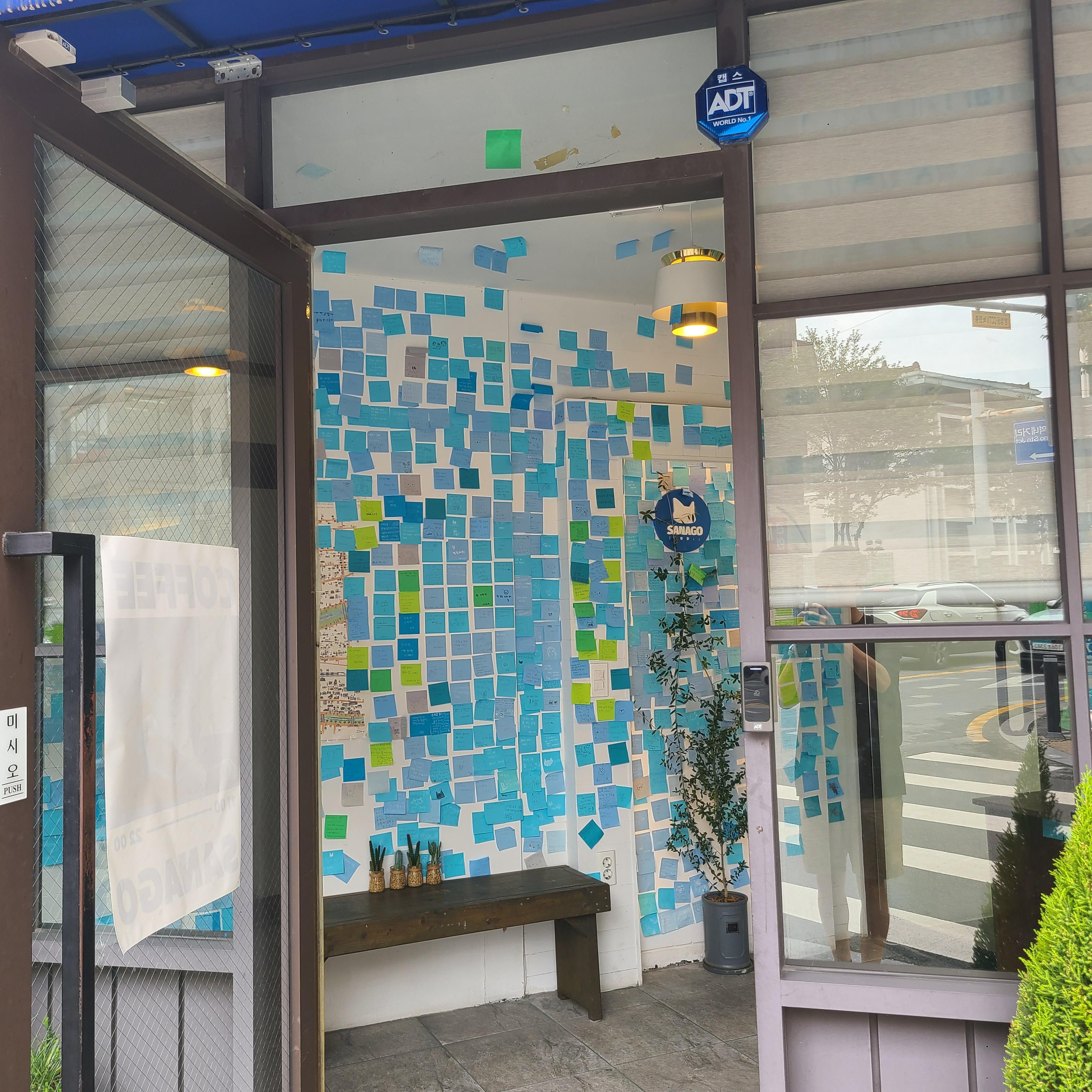 카페 입구에는 이렇게 방문객들의 방명록이 붙어있다.