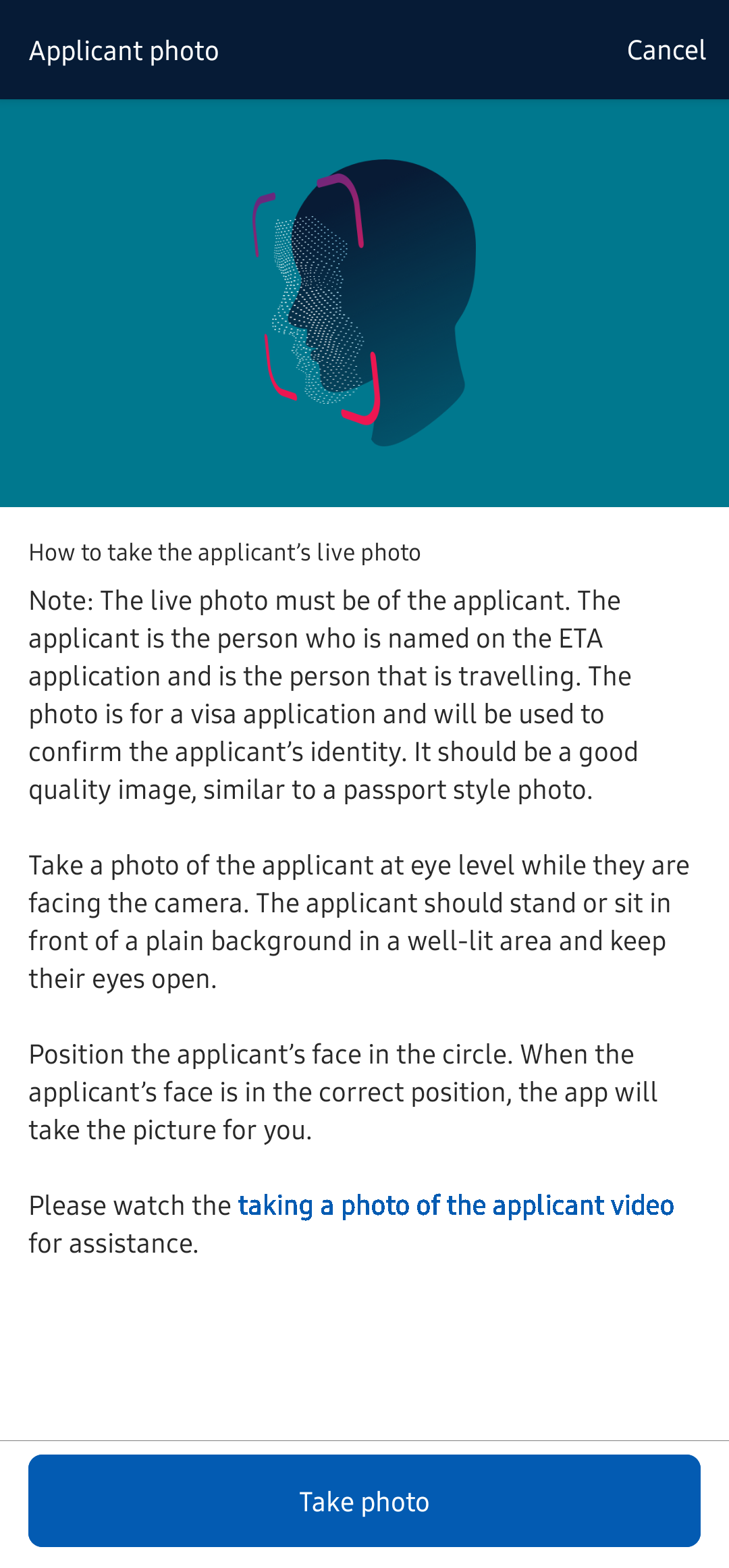 본인 얼굴 사진을 촬영한다.