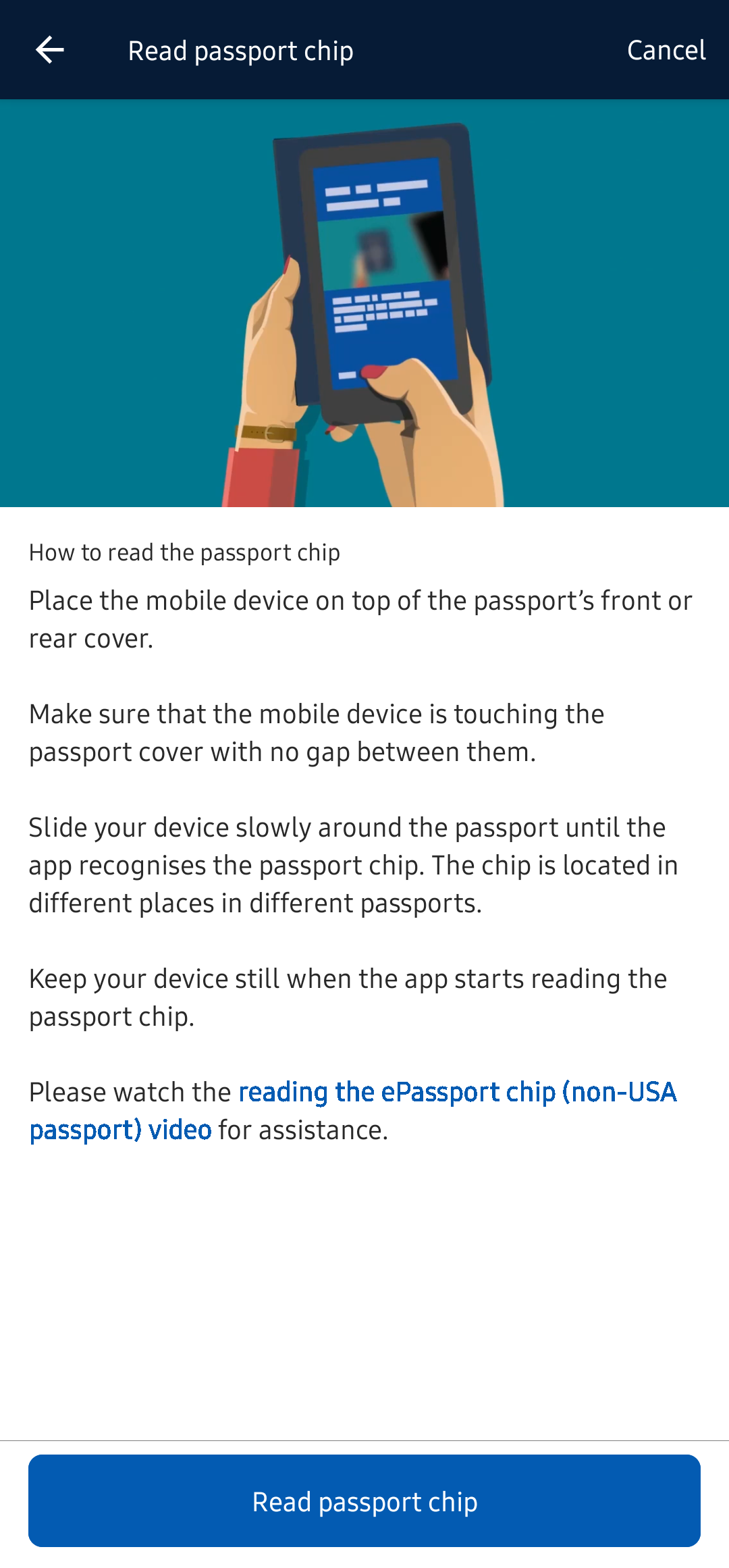 Read passport chip 버튼을 누르고