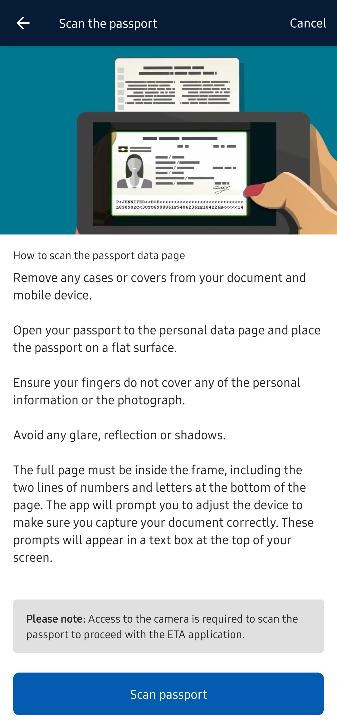 실물 여권을 스캔해야한다.