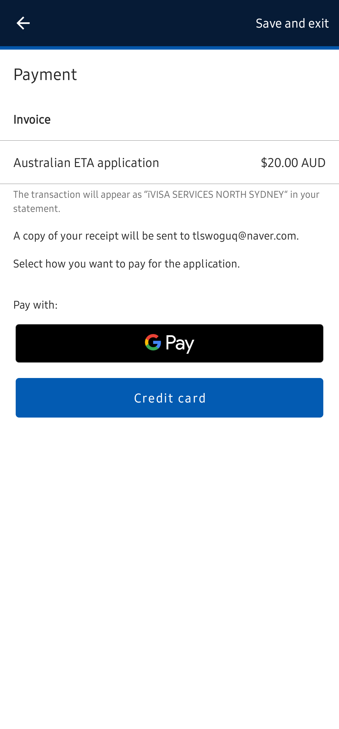 신용카드나 Gpay(안드로이드) 또는 애플페이(ios)로 결제를 진행하면 된다.