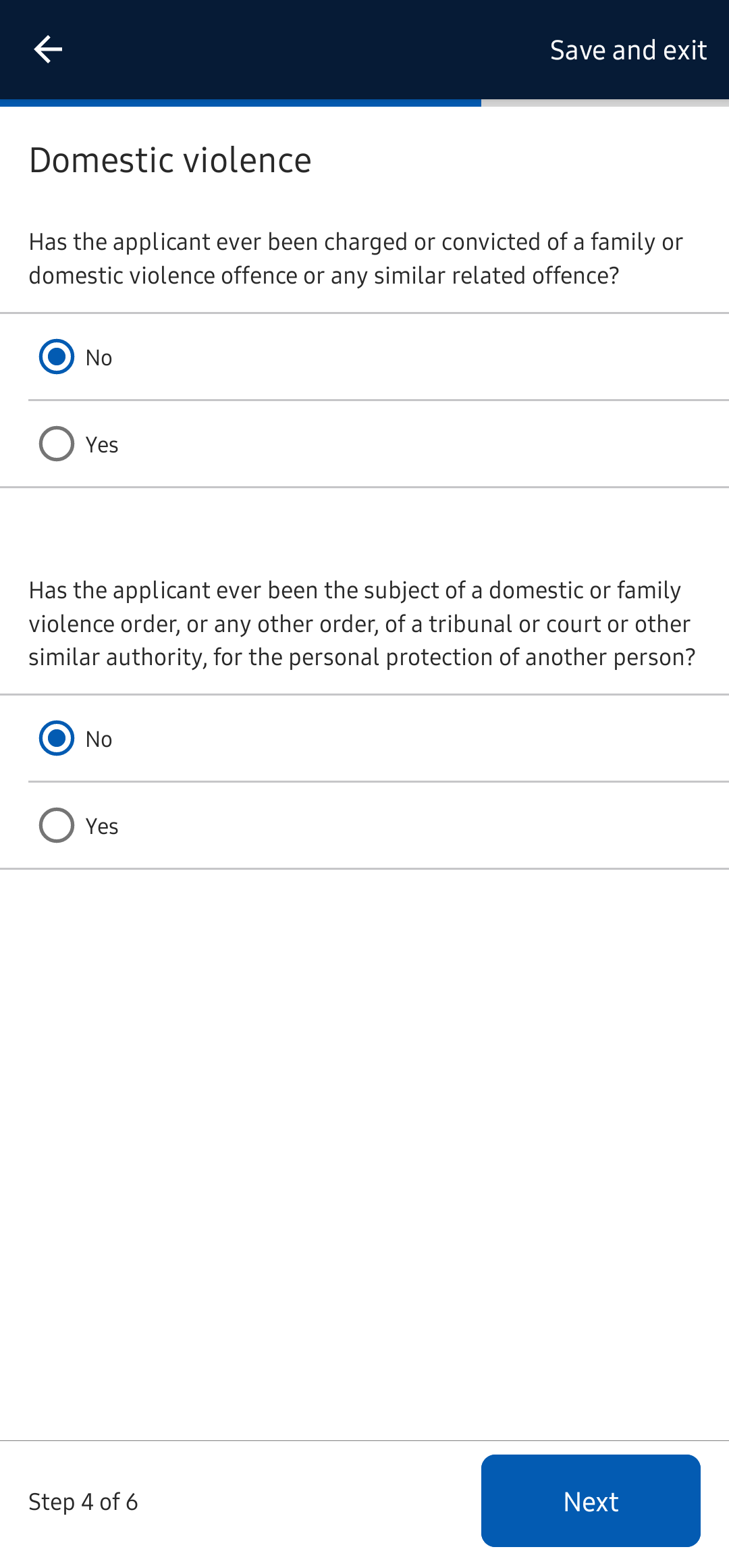 처음 신청한다면 No를 선택한다.