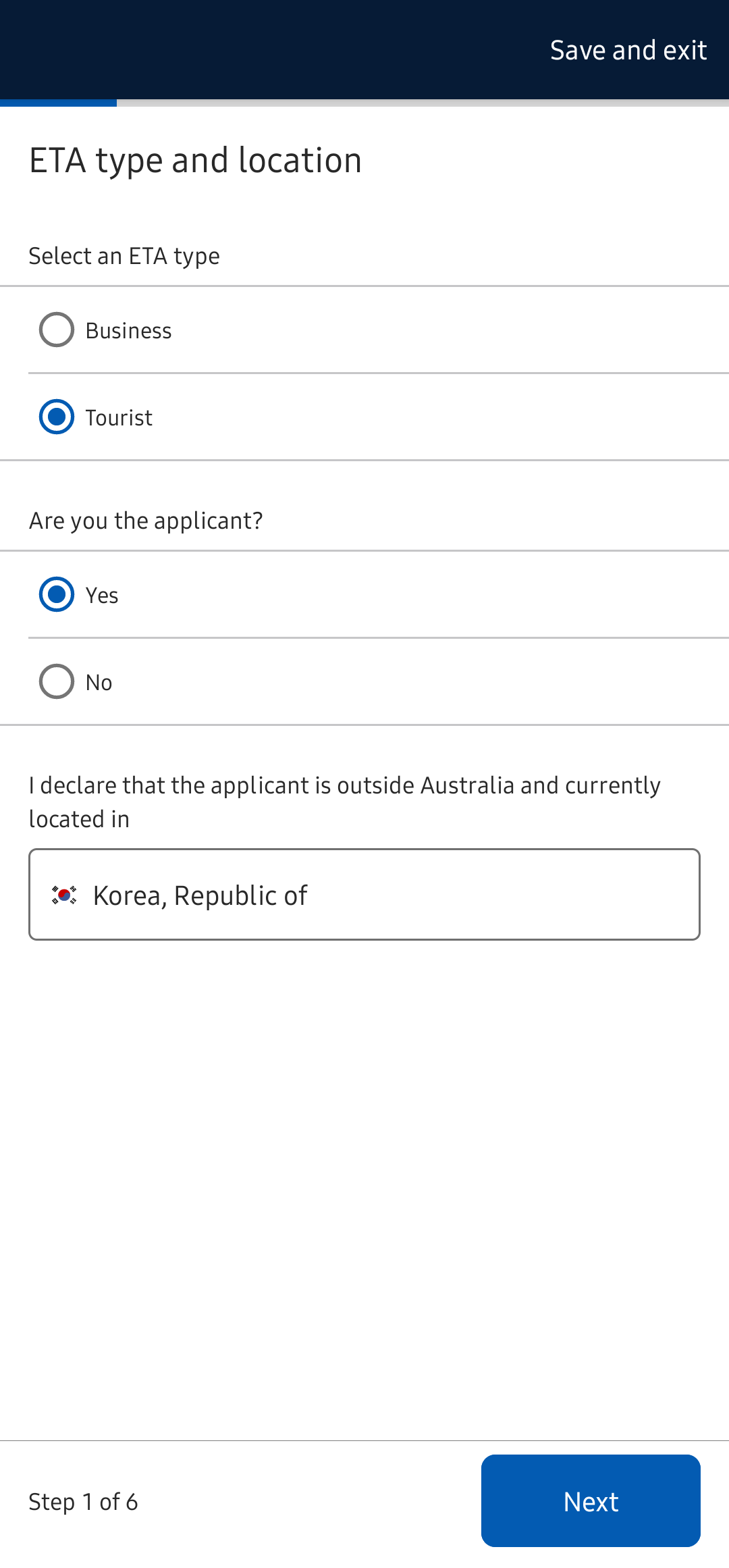 여행 목적이라면 Tourist선택 및 Yes선택하고