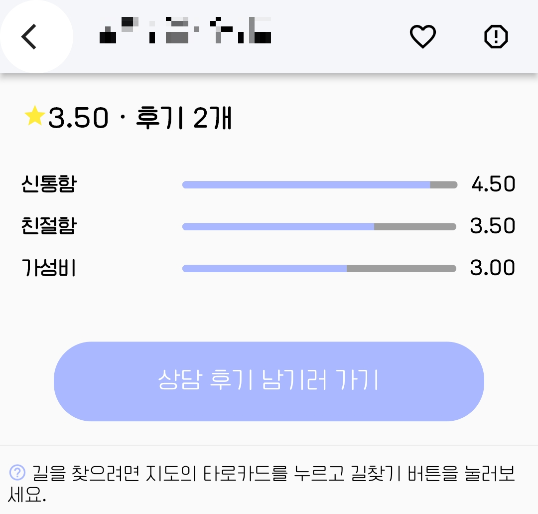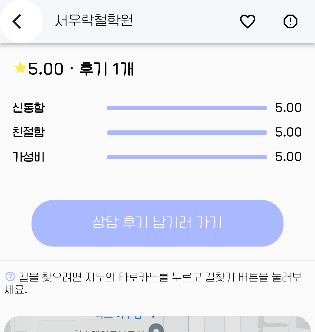 상담 후기와 위치는 앱에서 확인할 수 있다.