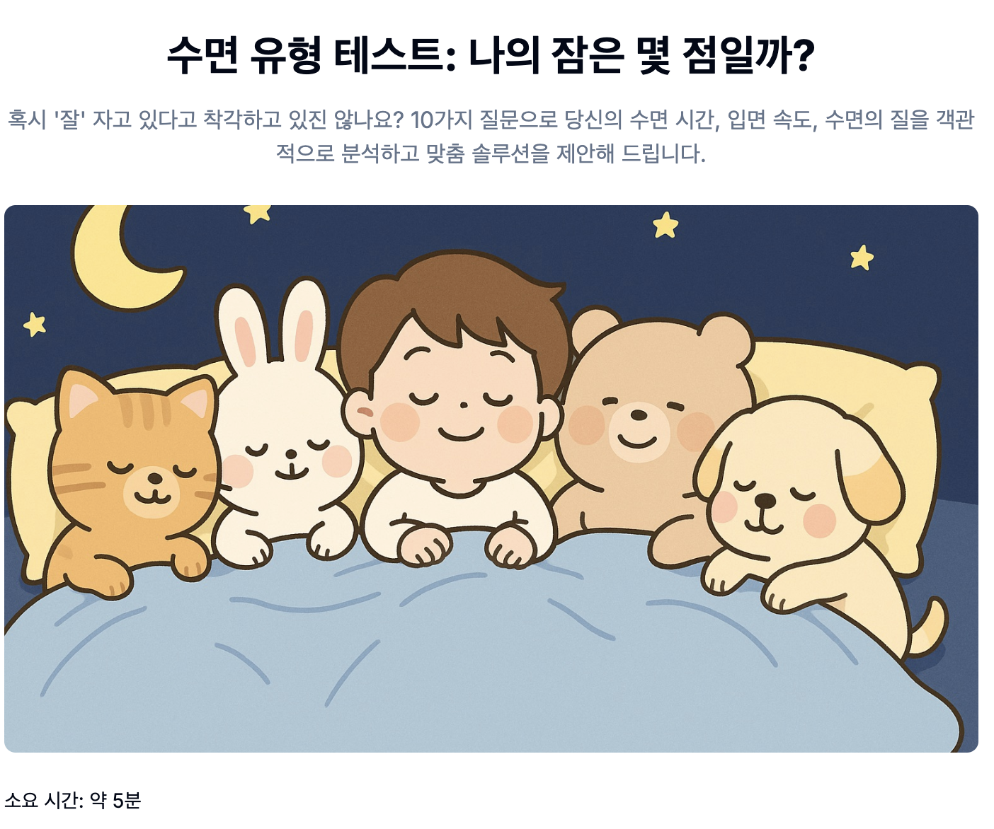 꿀잠 수면 유형 테스트 방법, 사이트 정리