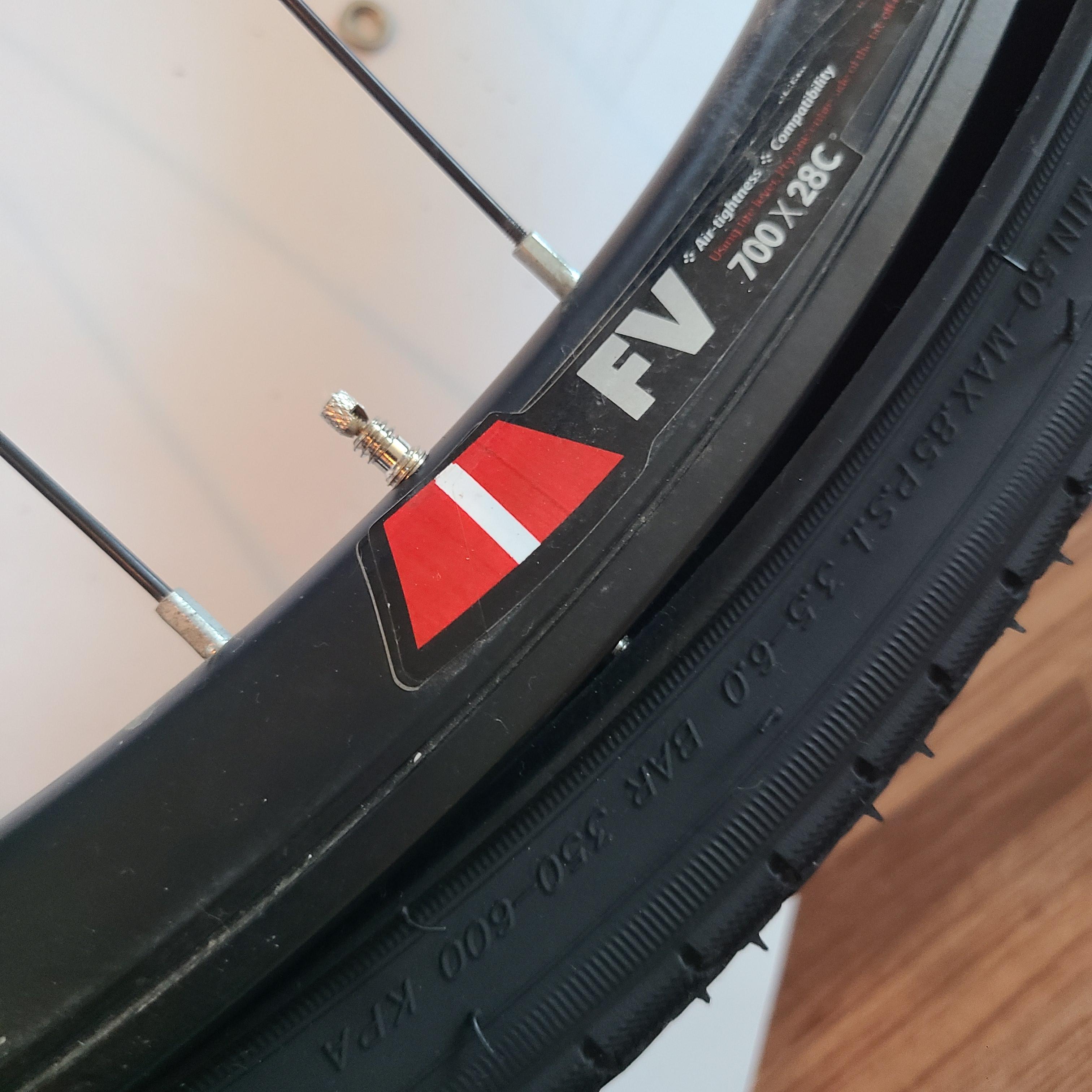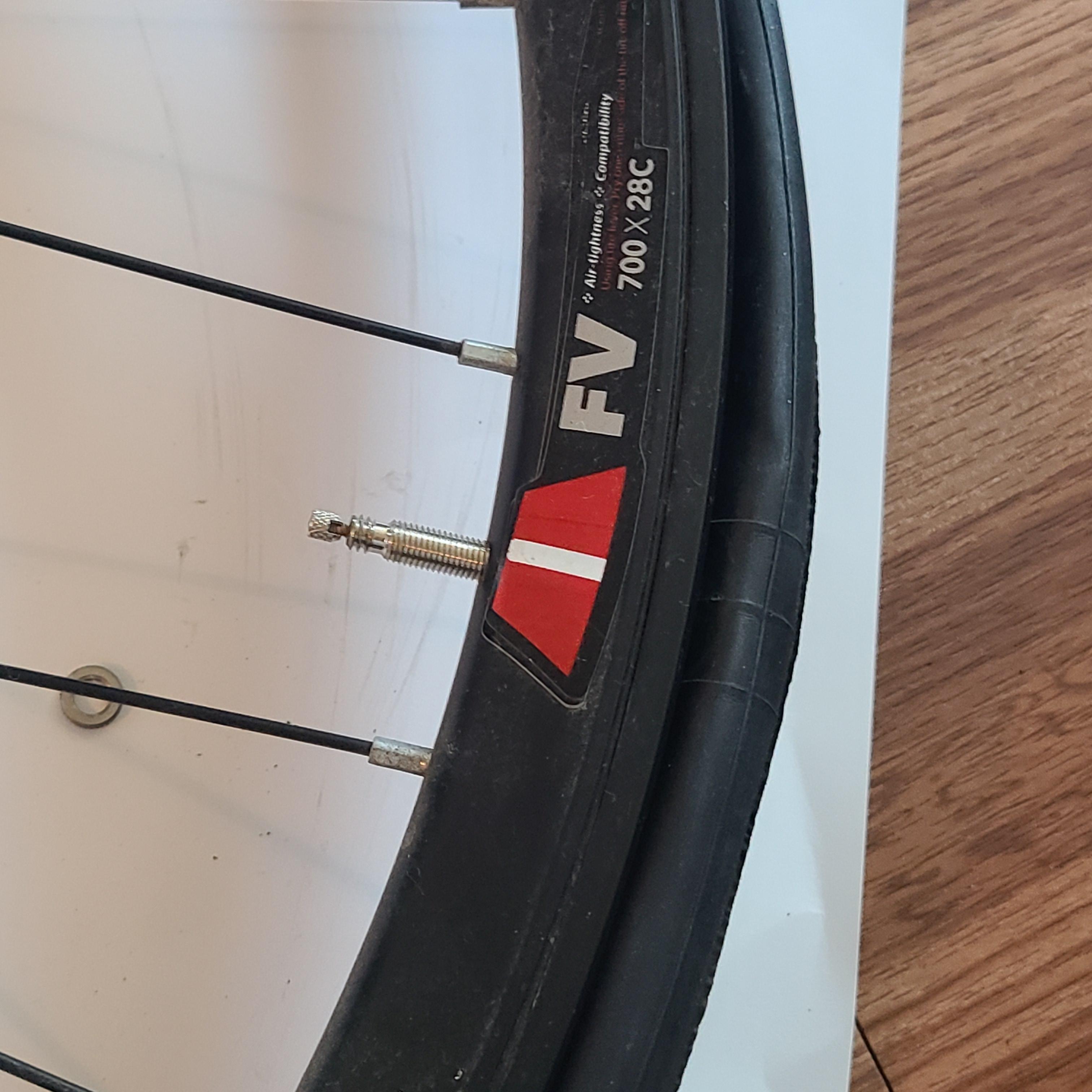 아래와 같이 튜브의 밸브가 자전거 휠에 걸려있는 것을 볼 수 있다.