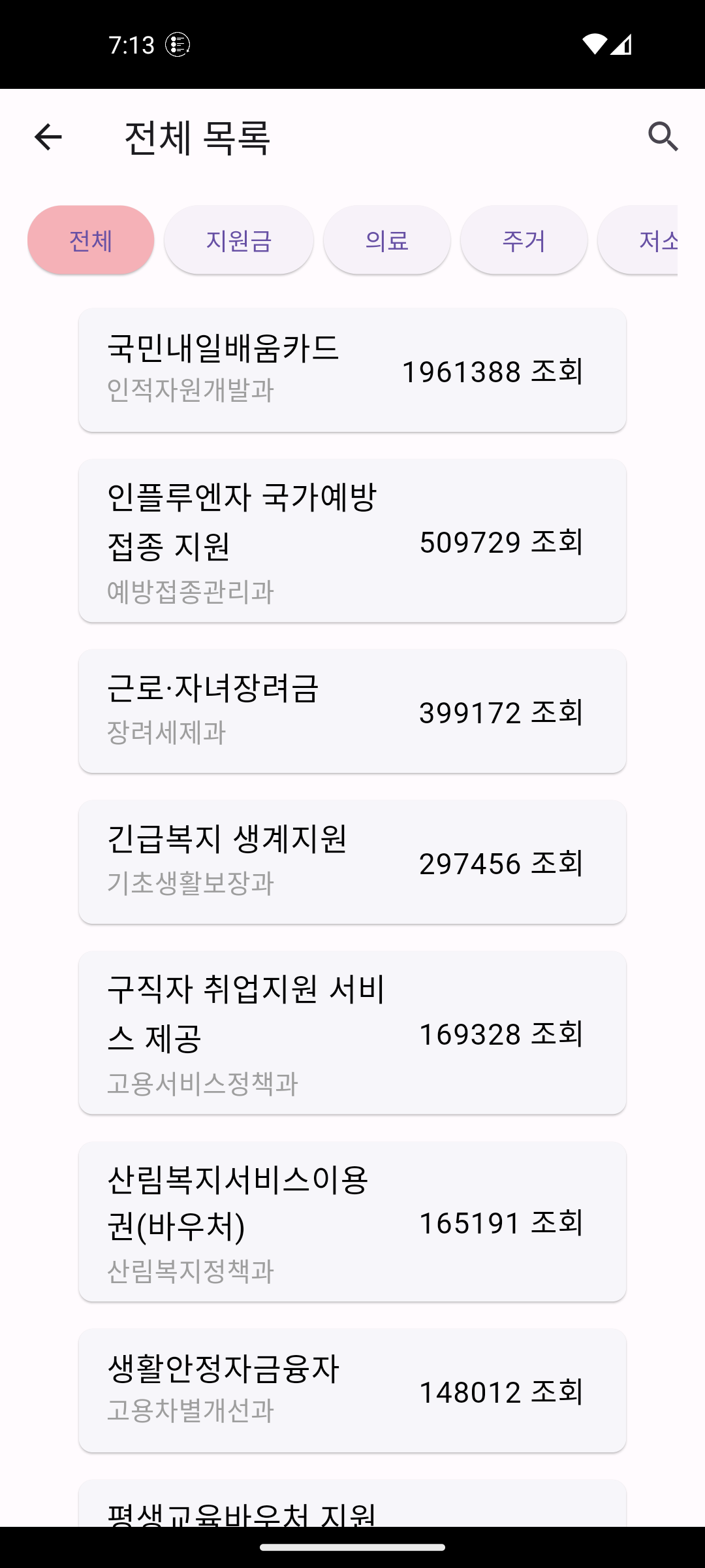 2. 복지 전체 목록 - 키워드, 텍스트 검색
