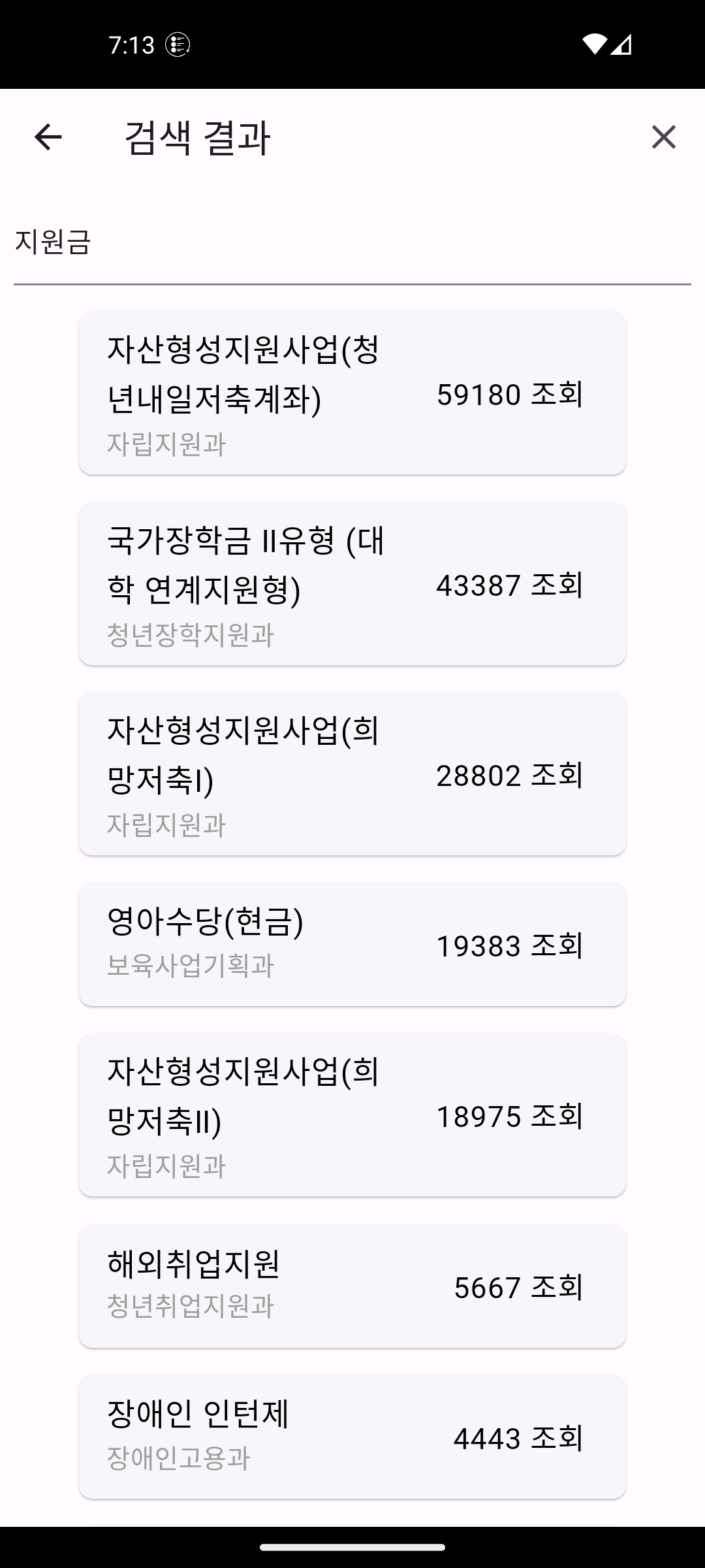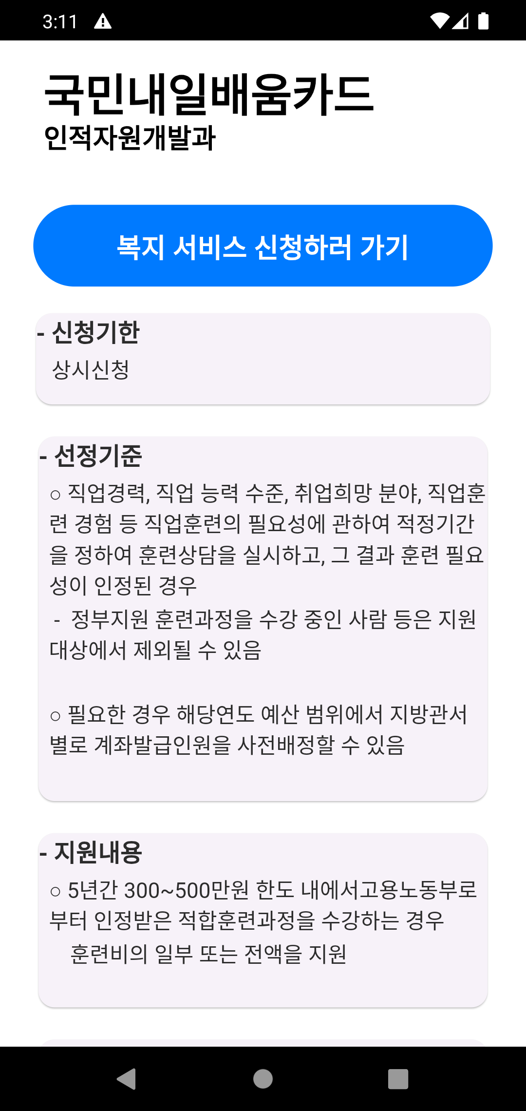 관심있는 복지 카드를 터치하면