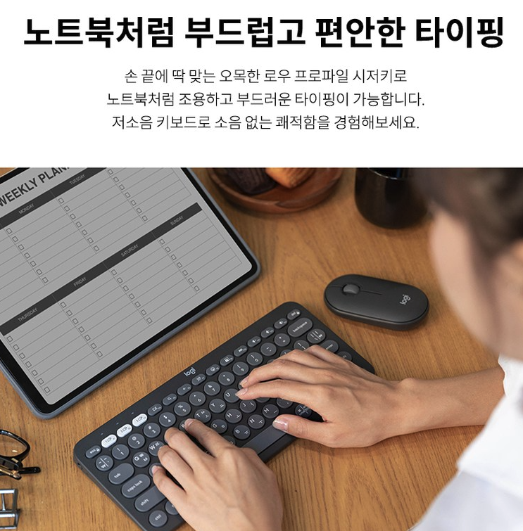 K380S는 낮은 키압을 가진 저소음 키보드입니다. 노트북 키보드처럼 말이죠.