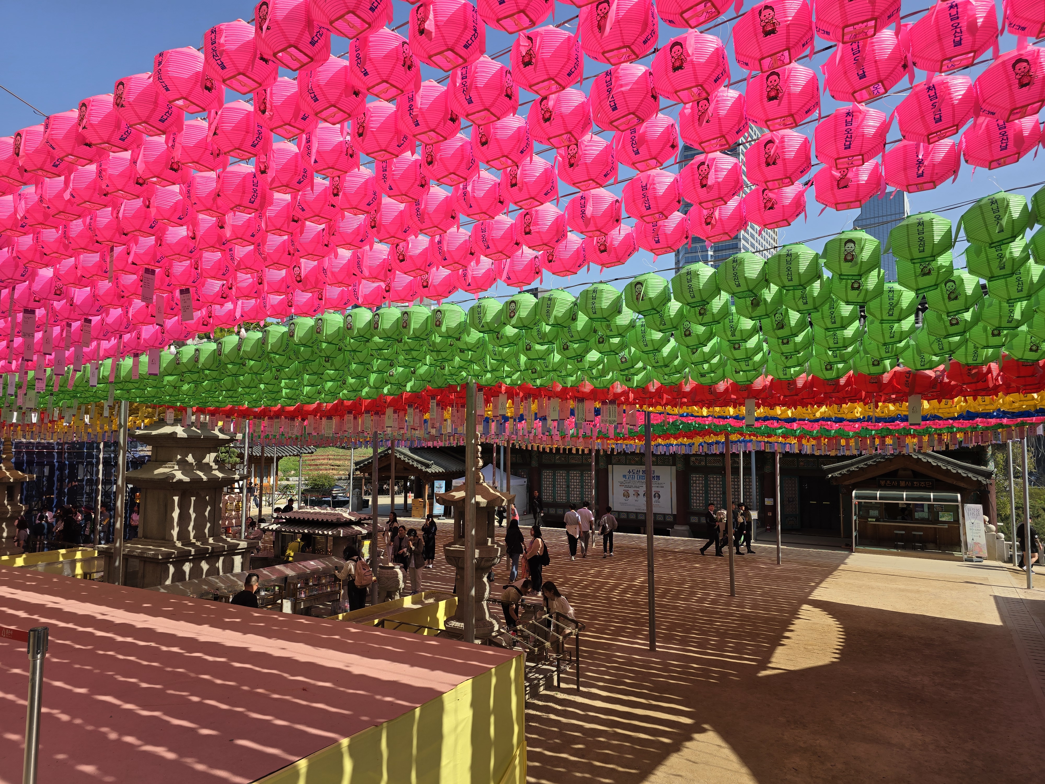 초파일을 앞둬서인지, 연등으로 입구부터 끝까지 지붕을 만들어주셨네요.