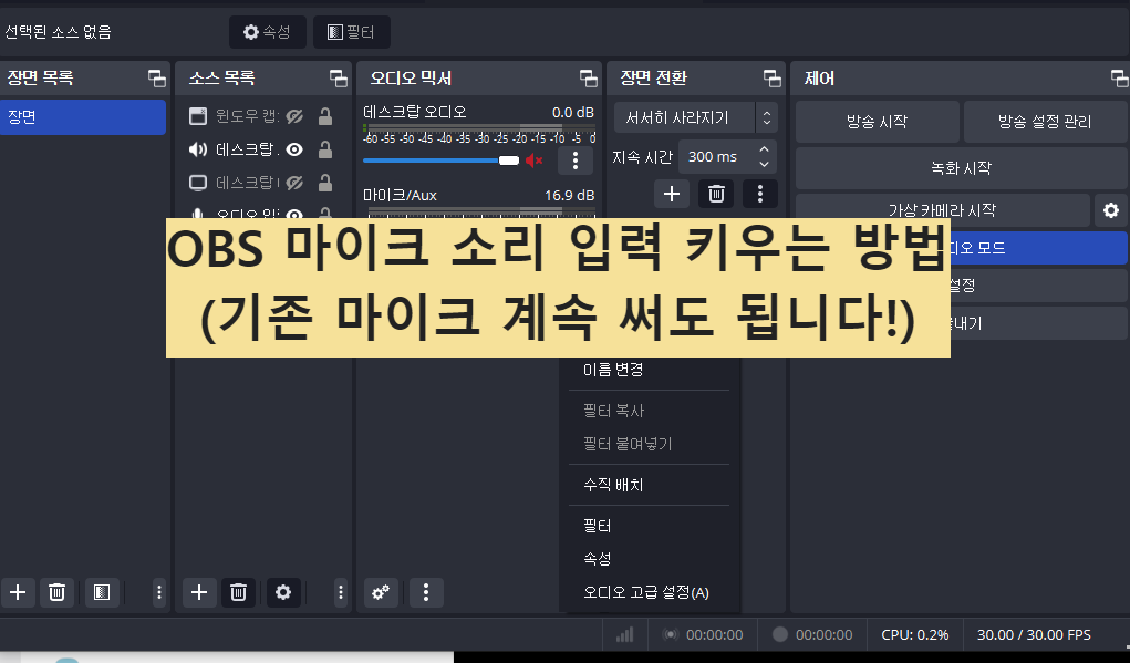 OBS 마이크 소리 입력 키우는 방법 - 100%보다 높게 키우는 방법