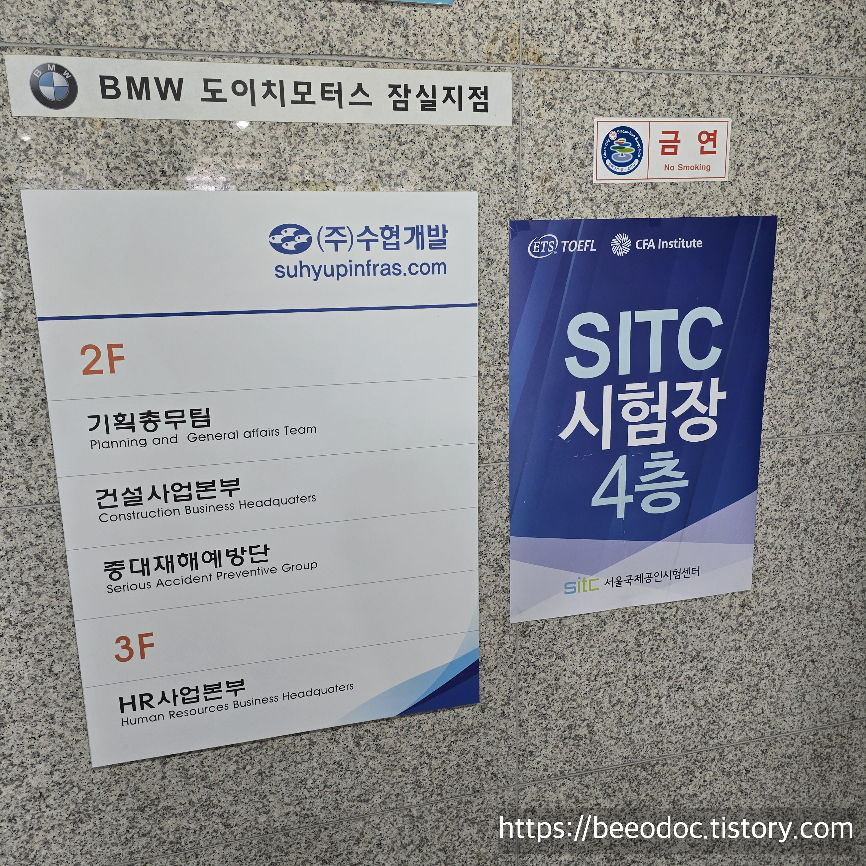 잠실역에서 내려서 도보로 이동할 수 있어, 시험 당일 혼잡하거나 이동 시간을 걱정할 필요가 없었습니다.