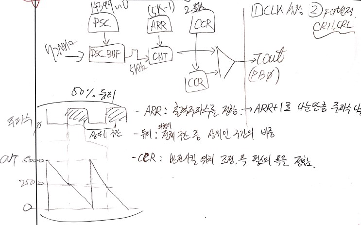: TIMx->EGR: 타이머의 이벤트 발생 레지스터( 0번 비트 1 -> 이벤트 발생 -> ARR, PSC 값 변경