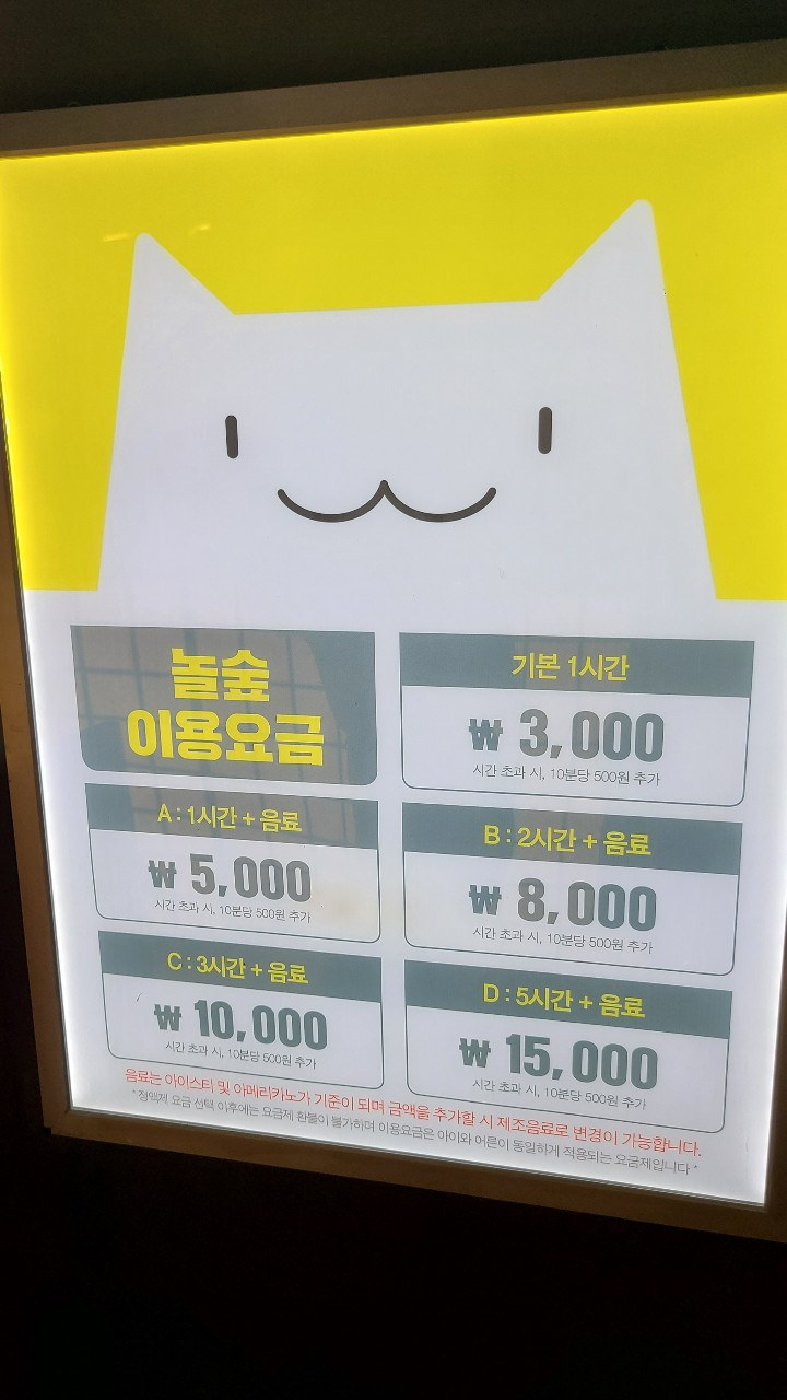 요금은 이런데, 음료 주문하면 이용요금에 할인이 있다.