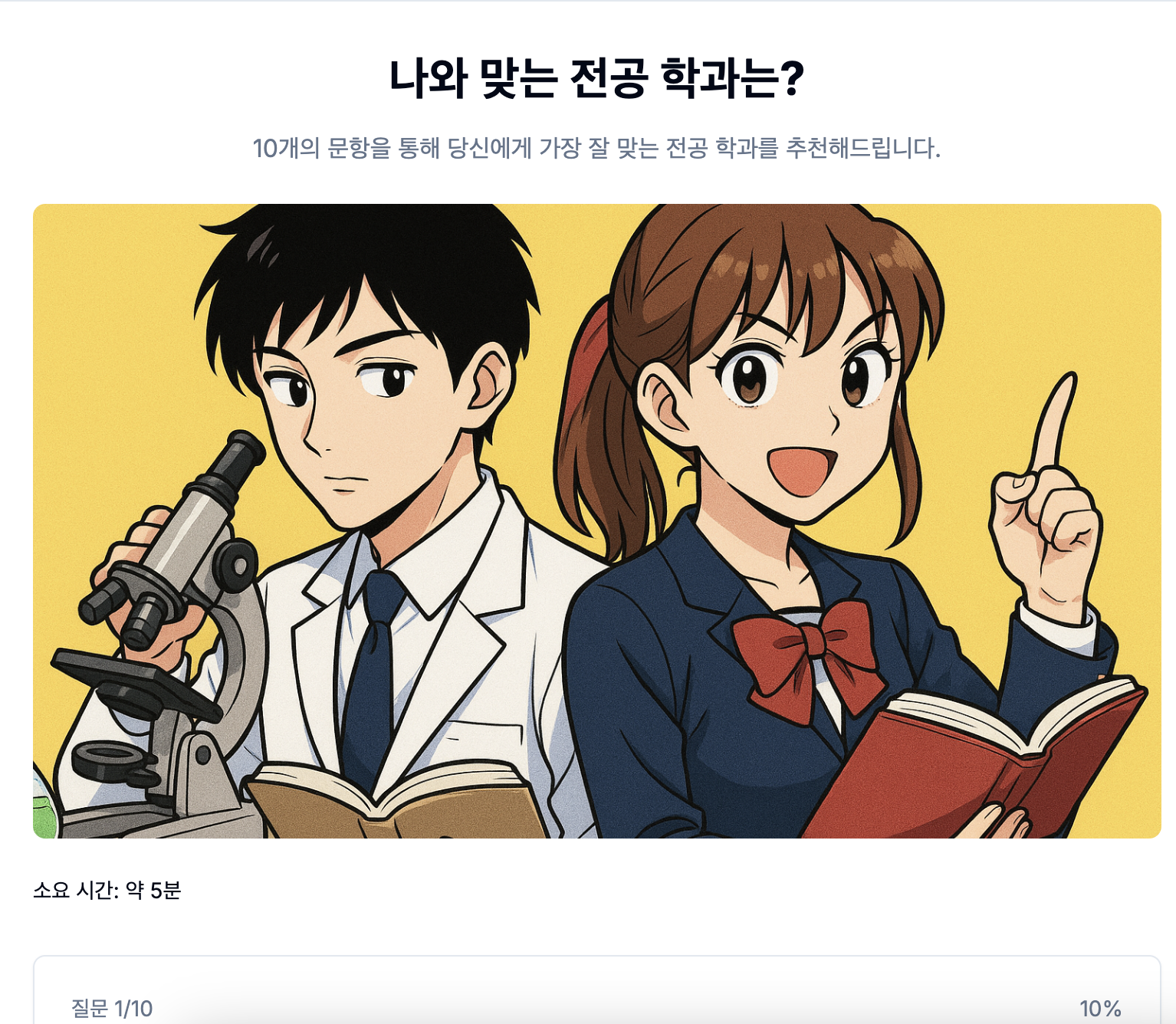 - 결과 확인: 테스트 결과를 통해 추천 전공과 그에 대한 설명을 확인합니다.