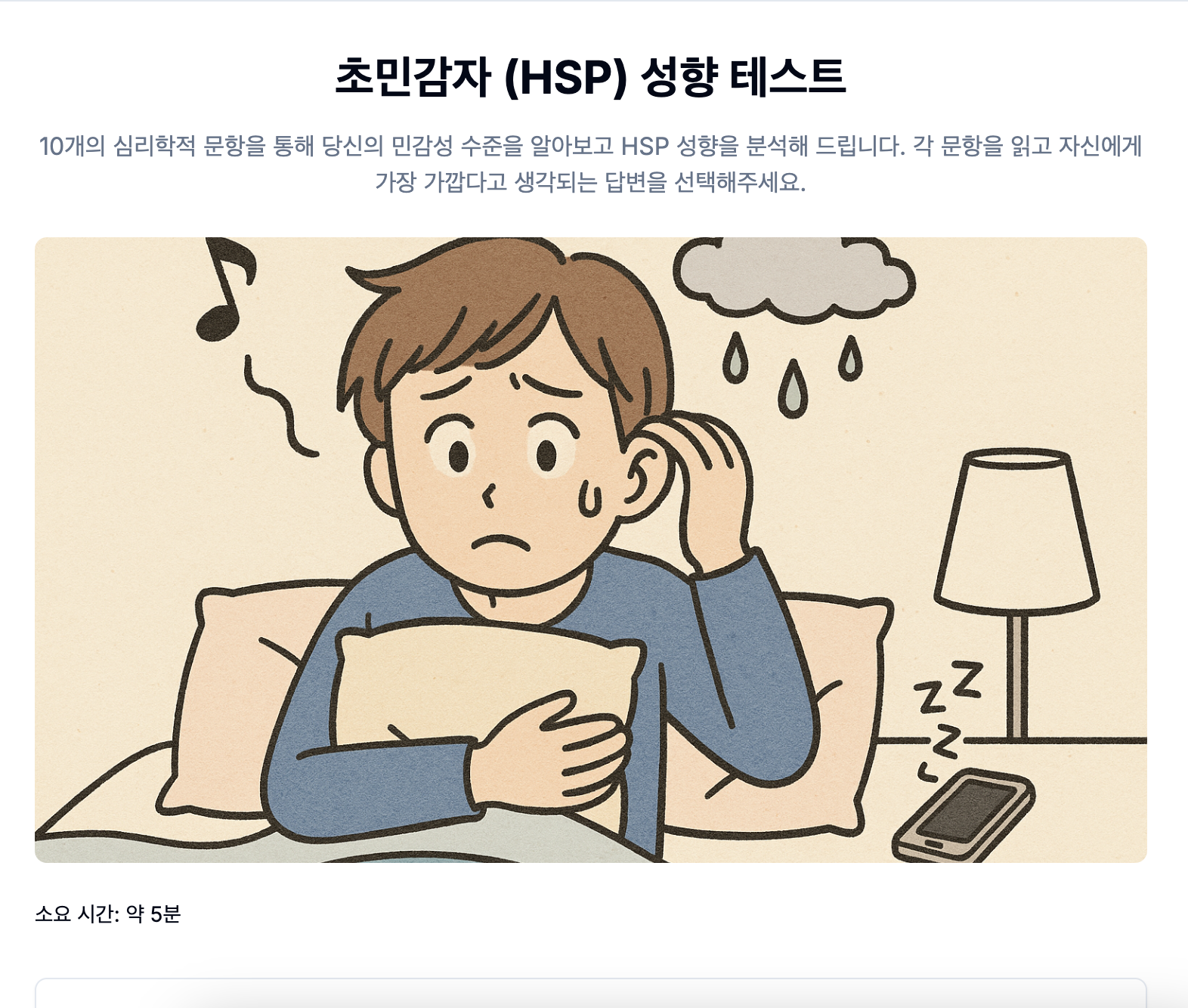 자신의 민감성을 이해하고, 감정과 감각에 대한 반응을 파악하는 데 도움을 주는 HSP 테스트에 참여해보세요.