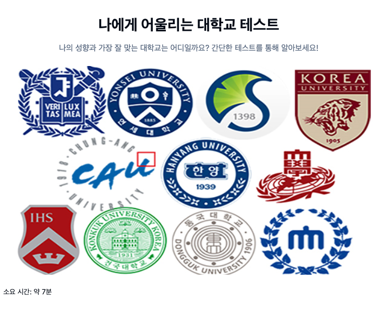 그래서 준비했습니다! 여러분의 깊은 고민을 덜어줄 특별한 테스트, "나에게 어울리는 대학교 테스트"!
