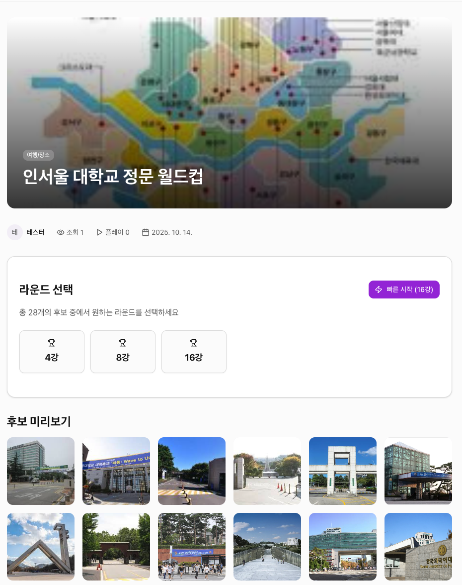 지금 바로 '인서울 대학교 정문 월드컵'에 참여하고, 당신의 마음을 사로잡은 최고의 정문이 어디인지 확인해보세요! 당신의 선택이 인서울 정문의 '진정한 미의 기준'이 됩니다!