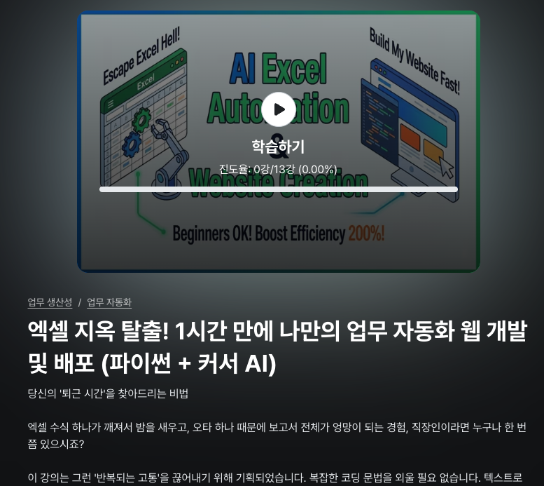 엑셀 지옥 탈출! 1시간 만에 나만의 업무 자동화 웹 개발 및 배포 (파이썬 + 커서 AI)| 코드브릿지 -
