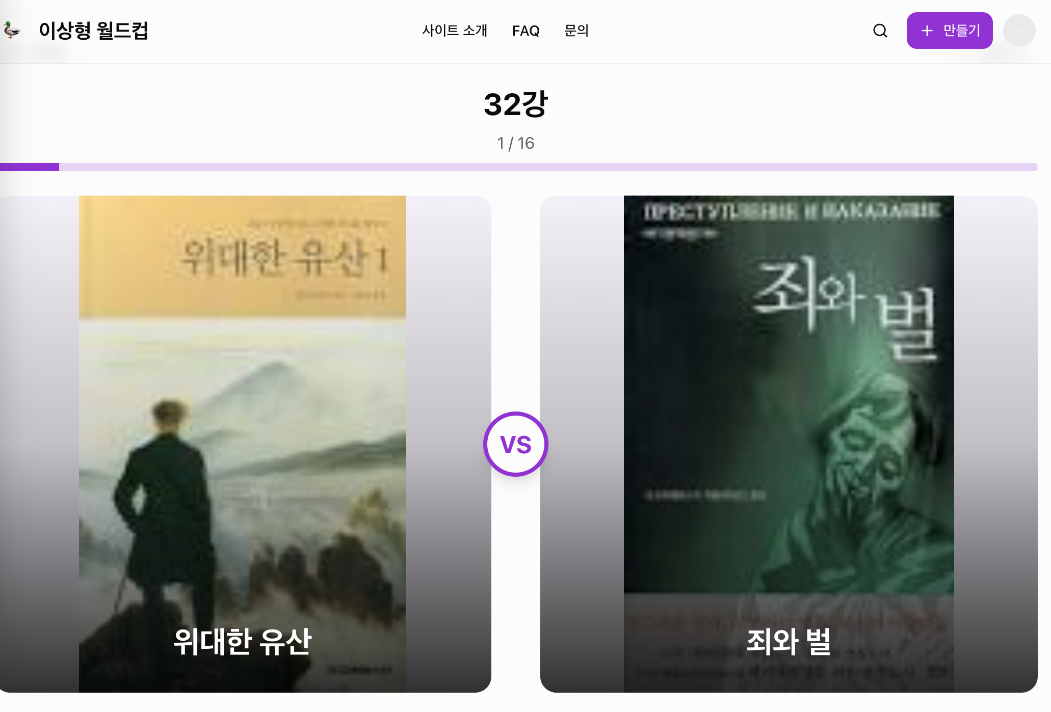 당신의 한 표가 새로운 명작의 순위를 만듭니다.